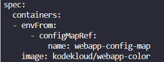 $ kubectl create configmap webapp-config-map --from-literal=APP_COLOR=darkblue --from-literal=APP_OTHER=disregard